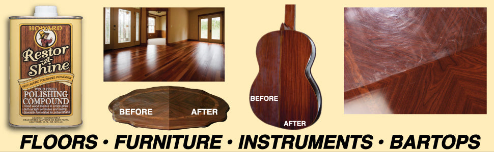 Restor-A-Shine Polishing Compound is specially formulated for restoring the high gloss shine to wood finishes. Use on wood furniture, bar tops, table tops, even pianos to buff away fine scratches and dullness, returning clear coat finishes to a high shine. Perfect as the final step in rubbing out a new high gloss finish or for restoring gloss to a high shine wood finish that has been dulled by steel wool.